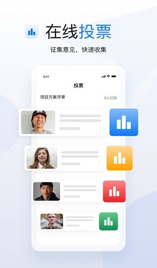 学长会议由金吉列大学长带来的每部员工会议软件,丰富的功能不仅有简洁大气的界面还有强大的多端协同连接以及记录查询等等,无需复杂的操作就可以轻松加入还有方便的体温以及投票功能等等十分值得一试。让用户们能够更加方便的进行沟通交流,可以直接在专属的会议室中进行讨论,支持对屏幕进行共享,随时发起在线投票等,需要的朋友赶紧来下载体验吧。