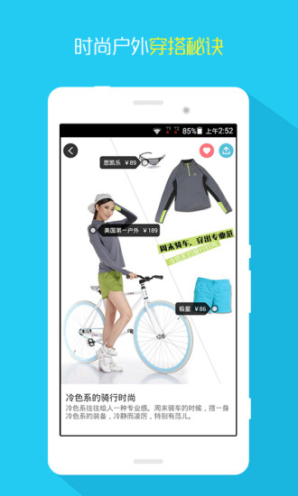 起点户外是一个关于运动潮流、资讯和购物的App,是专门为上班族、潮人、辣妈潮爸打造的休闲生活神器。