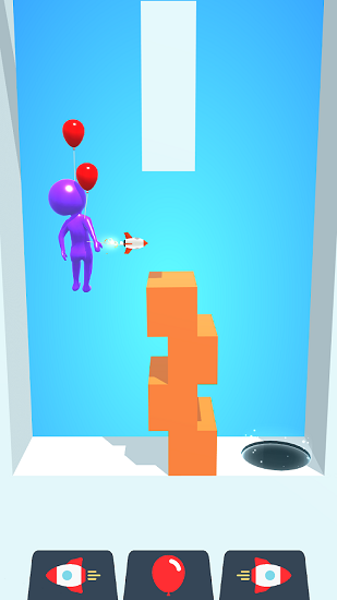 3、将这个懒惰的火柴人推进洞里,最简单的移动方式是使用气球和火箭!