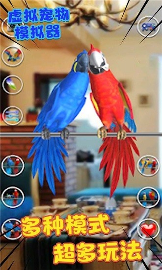 虚拟宠物模拟器是一款能真实模拟动物的休闲手游,你会模拟一直鹦鹉,它的生活习性你一定要了解,甚至可以为他装扮、哄他睡觉,为他喂食,与他互动。