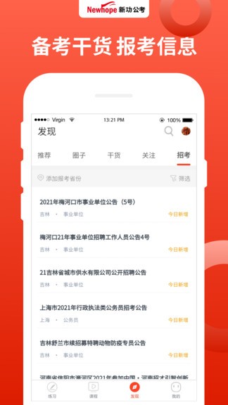 新功课堂软件安卓版为公考备考的用户提供了丰富的学习资源,支持在线学习课程知识,支持下载各种实用的资料,还可以在圈子里和备考的其他用户一起加油打气,交流心得体会,欢迎有需要的朋友下载使用!