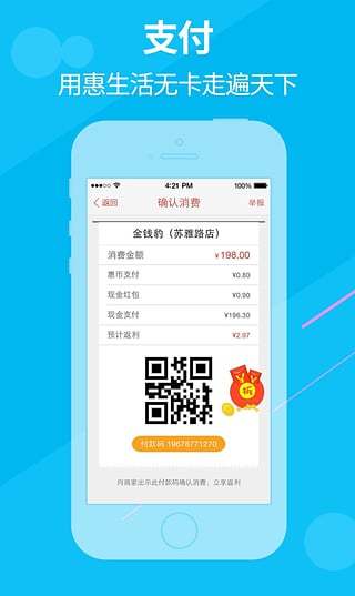 惠生活app是苏州麦萌信息科技有限公司开发的生活服务类手机应用,只为给您带来不一样的生活体验。消费分享赚钱有没有很吸引人,采用全新的O2O商业模式,打通用户和商户之间的通道,线上浏览,线下支付,为商户聚人气,引流量,发展会员。同时,独创消费收益新模式,以消费创造财富,以支出获取收益,为用户带来实实在在的优惠。
