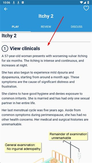 2、进入病例页面后,可查看View clinicals部分的病例临床信息,了解患者病情描述。