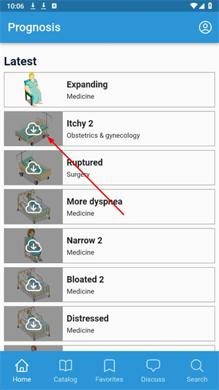 1、打开Prognosis APP,在病例列表中选择想要查看的病例,点击下载图标。