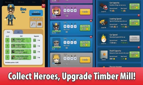 1、轻松成为真正的伐木大亨,购买工具提升你的砍树速度。