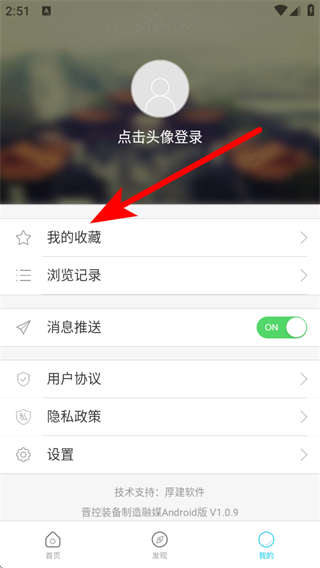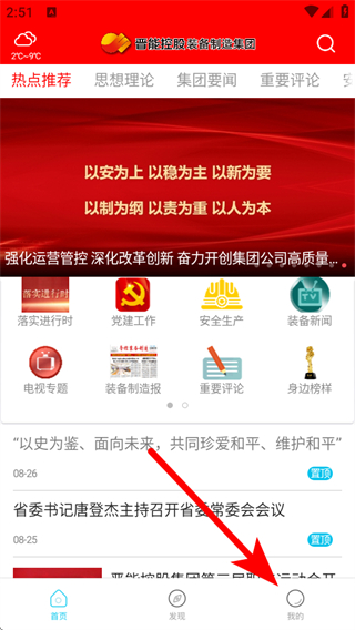 1、打开晋控装备制造融媒app,点击底部我的,进入个人页面。