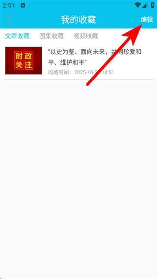 3、在我的收藏页面点击右上角编辑,可对收藏内容进行勾选操作。