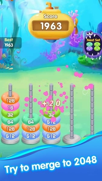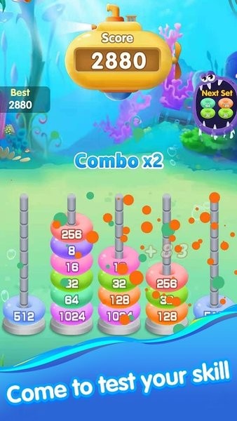 海环大师这是款新奇的休闲合成游戏,全新玩法2048,有很多列,你要按照他给你的环移动到不同的列去投放,然后去合成数字最大值,获得高额分数,游戏玩法简单,操作简单,趣味性十足,休闲的时候的好游戏,感兴趣的朋友们不妨可以尝试下载体验一番。