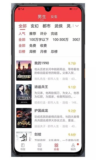 3、【内容齐全】:玄幻、都市、言情、武侠、科幻、军事、职场励志,应有尽有。