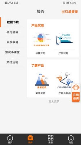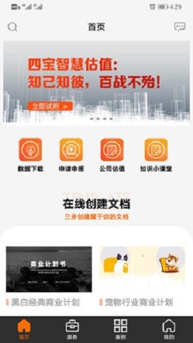 3、主打的四宝功能分别是数据下载、申请申报以及公司估值还有知识小课堂