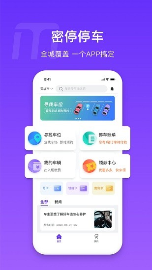 密停智能停车是一款智慧停车服务平台,可以帮助用户随时定位,查找附近的车场,并且可以随时预约车位,拥有多种快捷操作,包含了寻找车位、停车账单、我的车辆和领券中心,还有各种优惠套餐可以选择,让用户随时停车省钱更多。