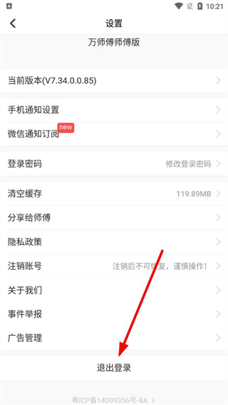 3、在设置页面中,找到并点击底部的退出登录选项,触发退出登录的确认提示弹窗。