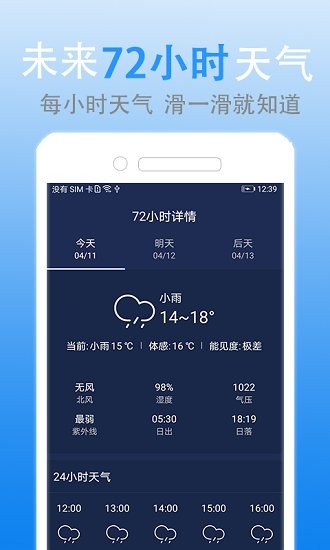 每小时天气变化都能轻松获取,内容清晰,让你能时刻掌握天气。