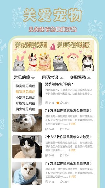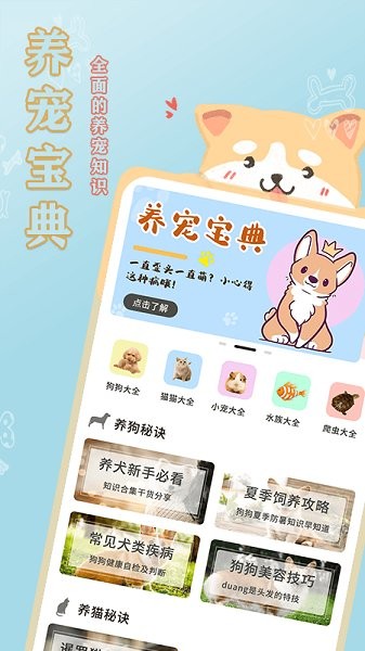 宠物大全手机版汇集了多种关于宠物的常识,为铲屎官们提供了一个更便利的信息获取平台,当你在养宠物的过程中遇到一些自己无法解决的问题时,就可以借助该软件来快速查询出你自己需要的信息,详情功能不妨来了解更多吧!