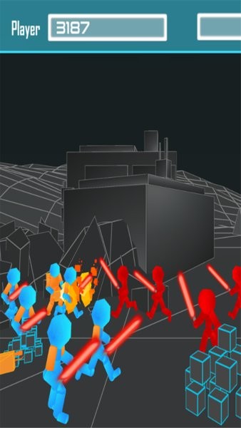 游戏采用了全新的3D引擎打造出的火柴人世界,点击屏幕进行挥砍和防御,开启热血战斗,合理搭配不同的火柴人战士兵种进行对抗。