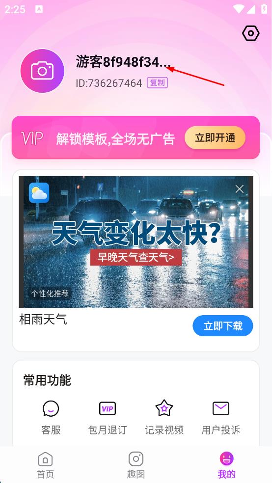 3、在个人页面点击用户标识区域,进入用户登录界面。