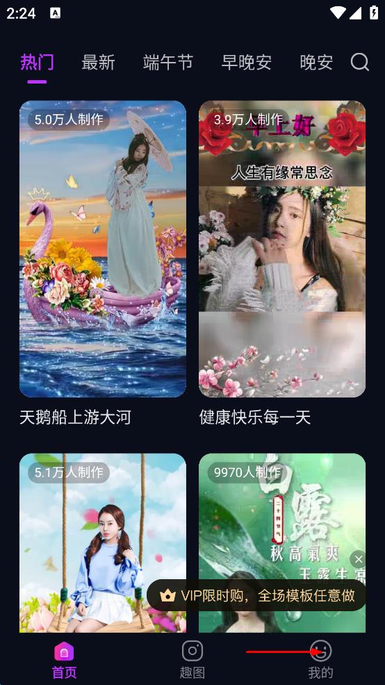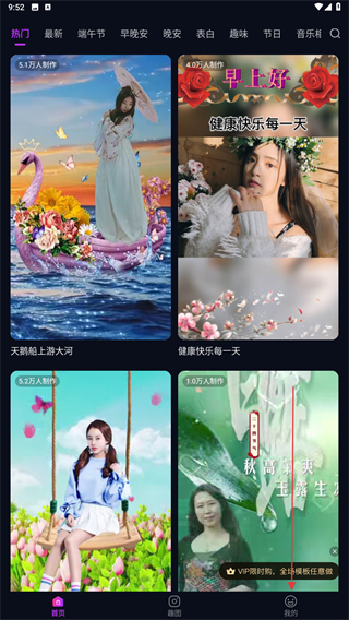 提供海量模板素材,轻松找到你喜欢的那一个。智能识别,一键替换成喜欢的照片,足不出户将这大好山河万水千山走遍。