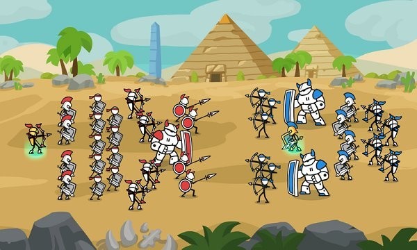 游戏的画面风格比较抽象,摧毁敌人的防御塔才是取得胜利的关键,利用火柴人组建一支强大的军队,指挥自己的军队参加大量的战争比赛,消灭一切敌人,安排兵力是非常重要的。