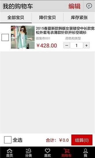3.快速的添加购物车能够进行统一的支付,也能快速的收藏店铺。