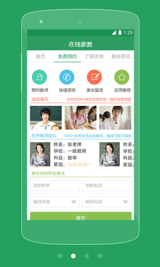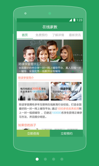 在线家教是一款教育学习类手机软件,汇集了众多教育专家,一对一进行辅导,家长之间还可以互相沟通,让孩子快速提高学习成绩,喜爱的朋友赶快下载体验吧!