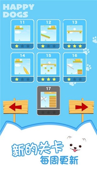 happy dogs是非常休闲的益智游戏,在游戏中你需要将天空中的狗狗小球引导至杯子之中,注意观察每一关的地形,利用地形可以很轻松的完成任务,游戏整体的难度不高,非常适合打发无聊的时间,并且可爱的小狗狗让你爱不释手,喜欢的朋友快来下载吧!