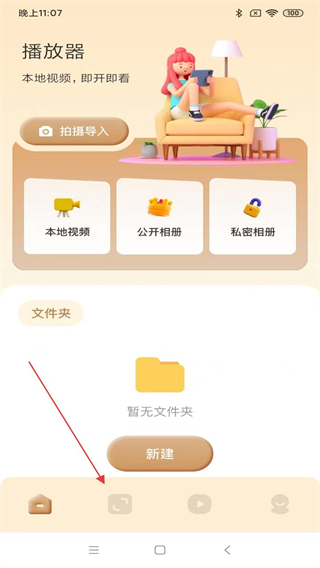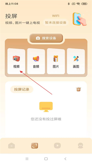 1、打开行星视频APP,在首页下方点击投屏的功能图标。