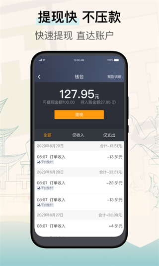 1、快速提现,直达账户:乘客付款金额直达司机账户,提现方便。