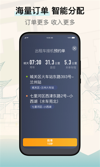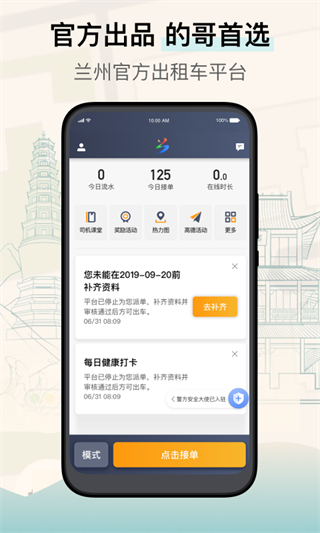 兰州出租司机端(出租车)是一款兰州本地出租车出行服务平台,专为该平台司机用户设计的助手软件,可以随时定位查看附近出行订单,拥有精准定位实时导航功能,可以快速推荐出行路线,堵车少接单多。