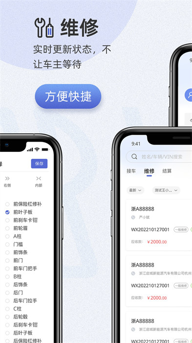 1、每种车辆的维修情况,维修进程,用户可随时进行查看