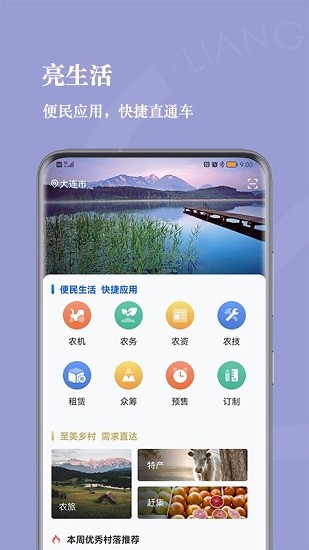 亮村为主致力打造幸福乡村生活,实现共同富裕的计划,有着十分丰富功能可以实现,可以在线观看乡村的各类生活方式,体验最真实的乡村生活,还有乡村的名宿可以预约,可以在线观看各大乡村的新闻资讯活动,有什么通知能够第一时间知晓,有需要的朋友快来下载吧!