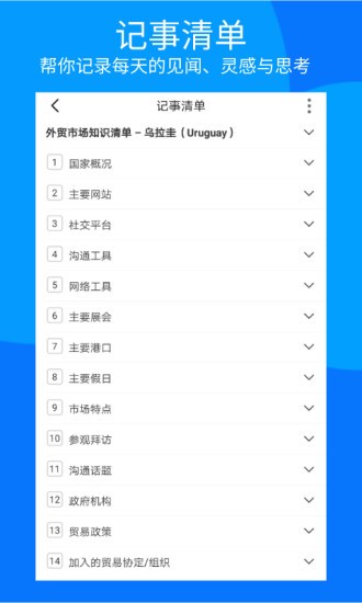 外贸清单,是专注于外贸行业的知识管理工具,可以帮你高效管理、应用、分享外贸知识,打造你自己专属的外贸知识体系。与此同时,外贸清单也是一款适用于多场景的个人效率提升工具,可以帮你用更高效的方式和清晰的结构来记录、创作、管理知识和信息,提升个人思考效率及工作效率。