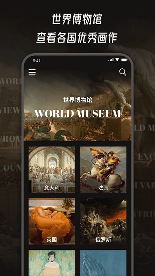 世界名画展能够让用户在线欣赏到各种名画,这里为大家每日推荐一副名画,并且还附带讲解,让用户能够学习到名画的知识,并且名画的种类是非常多的,并非只有一种,如果你喜欢画画,那么这里一定是你不能错过的秘密基地。
