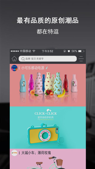 特逗潮流Goios版是一款最潮、最好玩的动漫爆款购物及闲置交易社区。在这里有最时尚、最潮流的衣服,满足你爱美的需要,让你成为潮人,而且还有动漫、游戏等,让你摆脱无聊。这里的每个潮品都具有它背后的故事,每张图片都是唯美的,是热爱原创、时尚女孩的聚集地,每一件潮品都让你爱不释手。并确保每件潮品是全网最低折扣!同时这里也是最前卫的移动端闲置物品交易平台。欢迎大家前来下载体验!