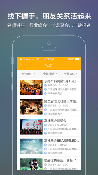 3.及时了解社群活动,一键轻松报名,多线互动,激活人脉。