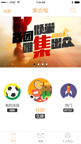 1.社团都在这里:集合啦现在不仅仅只有活动了,新增了社团模块,不想一个人参加活动的,可以加入社团,和其他小伙伴一起玩,认识更多的朋友。