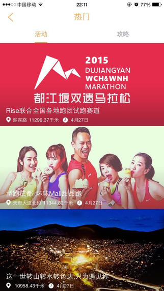 集合啦是一款场景类社交软件,集合网罗了线下所有精选活动,包括跑步,骑行,户外,越野等等活动,目前暂开放成都。旨在引导用户通过线下优质的精选活动扩大自己的社交圈,认识更多有相同兴趣爱好的小伙伴。
