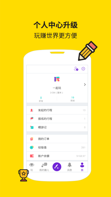 2.个人中心升级,新增随时提现,行程查询,报名查询功能,玩赚世界更方便