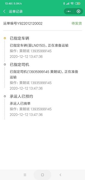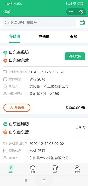 6、支持按运单编号、车牌号搜索运单,支持通过起始和结束时间搜索运单;