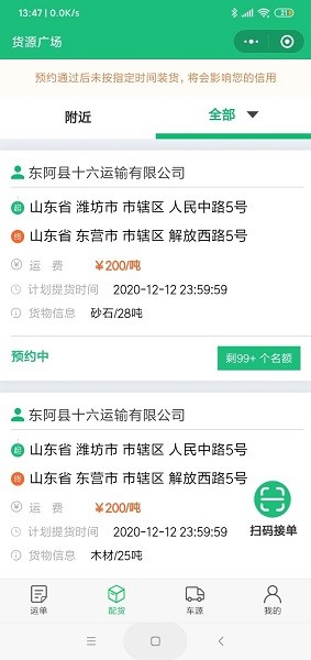 7、支持根据定位查看附近和全部货源,支持查看特定托运人的货源;