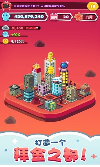 是一款非常好玩的模拟经营类手机游戏。商业大亨经营模拟游戏采用了卡通的画风,画面简约,在这里玩家将从一家小公司开始做起,你将亲自去跑业务,接取各种任务,通过不断的发展,逐渐成长为商业巨头,你的每一个决定都会影响到公司的发展,玩家一定要小心应对。