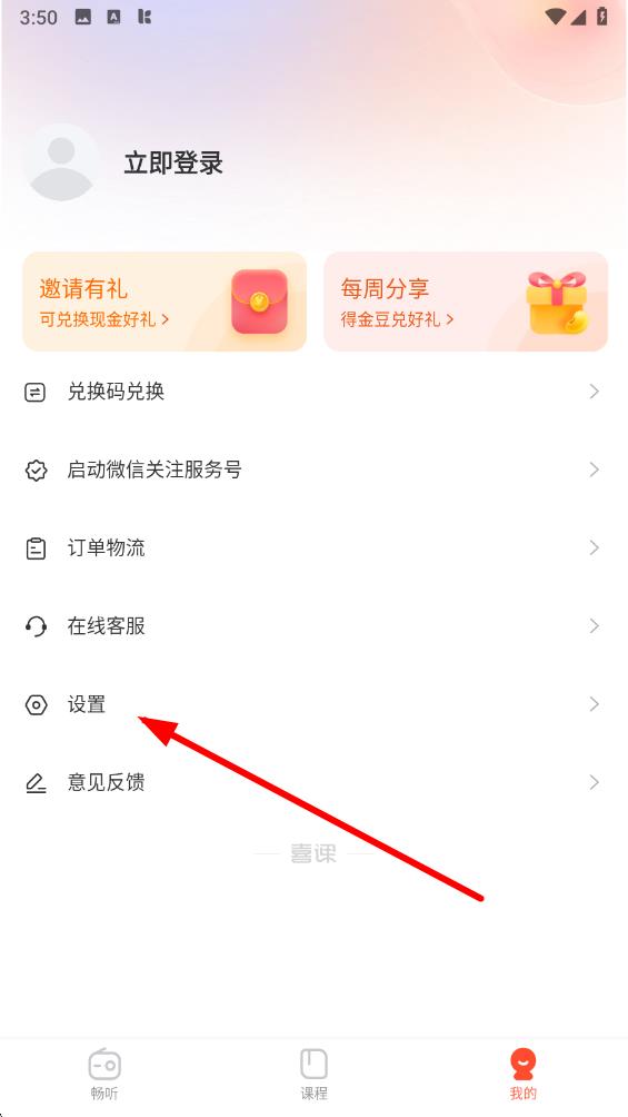 1、打开喜课app,点击底部导航栏中我的选项,进入个人相关界面。