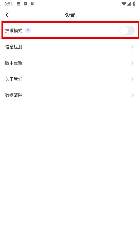 3、在设置页面中,找到护眼模式功能选项,此时其开关处于关闭状态。