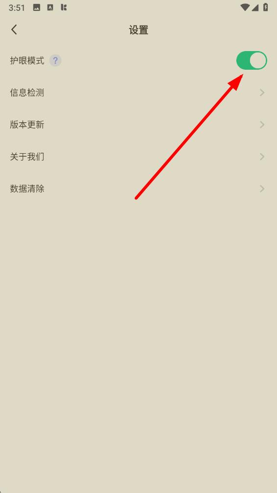 4、点击护眼模式右侧的开关按钮,将其切换至开启状态,即可成功启用护眼模式。