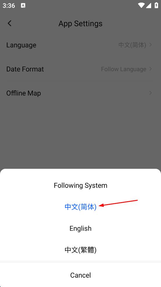 3、在应用设置页面,点击“Language”选项,弹出语言选择列表。