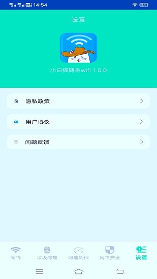 小白猫随身wifi是功能非常丰富的wifi软件,能够帮助我们更加方便的管理好WiFi,能够查看我们WiFi的连接数量和设备,随时查看有没有人蹭网,还能测设连接WiFi的安全性,保障我们上网安全,一键进行网络测速,使用起来非常的方便,有需要的小伙伴快来下载体验吧!