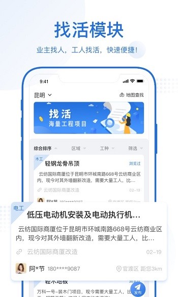名匠工坊APP是一款建筑行业找工人、找活干的服务软件,由名匠工坊建筑技术服务(云南)有限公司开发,精准对接用工务工双方,助力共赢。