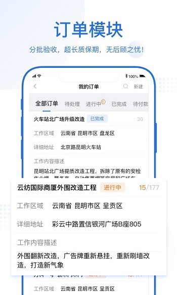 名匠工坊是专为工人开发的接单管理app,有很多在线需要工人工作的订单,而且订单的内容都是真实可靠的,还可以线上和雇主交流,可以商量讨论工价,非常的方便,每次都能自动记录工作地点和工时,使用起来也是非常的简单,有需要的小伙伴快来下载体验吧!