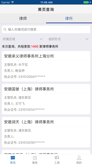 “上海律师”是上海市律师协会官方开发的手机应用软件,是面向协会会员提供资讯浏览、信息查询、业务服务的系统。会员可凭东方律师网的账号密码直接登录,免注册。欢迎广大律师会员安装使用,我们也将不断优化提升应用的功能。主要包括协会通知、行业动态、区县动态、研究动态、律师查询、律所查询、活动报名、工作安排、面试考核申请、会员卡、信息上报、二维码扫码等功能。