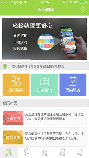 爱心健康管家app,一款线上健康医疗管理服务平台,在这里,软件提供了线上健康咨询、解析体检报告、专家预约、就诊服务等等,帮助大家及时了解自己的身体健康状况,软件里还提供了丰富的健康小知识,更有专家一对一解惑,软件使用起来非常方便。