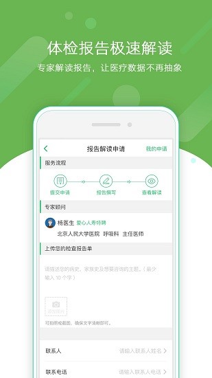 3、支持全国公立/私立医院体检报告一键查询;医院健康管理专家在线解读报告;